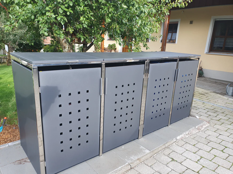 Unsere Mülltonnenboxen sind nicht nur funktional, sondern auch ästhetisch ansprechend. Wir achten darauf, dass unsere Produkte nicht nur praktisch sind, sondern auch zu Ihrem persönlichen Stil passen. Daher bieten wir Ihnen eine Vielzahl von Designs und Farben. So können Sie eine Box in der passenden Farbe und mit Ihrem bevorzugten Material wählen.